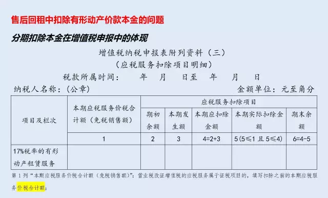 90號(hào)公告第三條規(guī)定,納稅人提供有形動(dòng)產(chǎn)融資性售后回租服務(wù),計(jì)算當(dāng)期銷售額時(shí)可以扣除的有形動(dòng)產(chǎn)價(jià)款本金,為書面合同約定的當(dāng)期應(yīng)當(dāng)收取的本金。無書面合同或者書面合同沒有約定的,為當(dāng)期實(shí)際收取的本金。