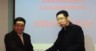 2011年11月15日,公司與天津銀行在河北省石家莊市河北建投大廈舉行了全面合作簽約儀式,周為民總裁與天津銀行副行長(zhǎng)岳德生代表雙方簽署了《全面合作協(xié)議書》,天津銀行為公司先期提供同業(yè)授信額度4億元,定向用于開展協(xié)議約定項(xiàng)下業(yè)務(wù)。