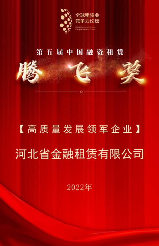 日前,第九屆全球租賃業(yè)競爭力論壇年度峰會(huì)圓滿召開,河北省金融租賃有限公司(以下簡稱“河北金租”或“公司”)再度攬下中國融資租賃“騰飛獎(jiǎng)”,榮獲“高質(zhì)量發(fā)展領(lǐng)軍企業(yè)”榮譽(yù)。全球租賃業(yè)競爭力論壇峰會(huì)是一年一度的世界級(jí)租賃行業(yè)峰…