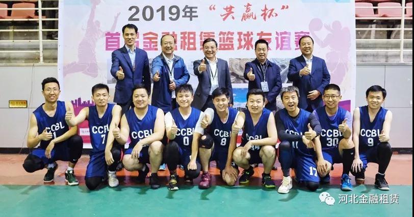 ▲河北金租總裁王永生(后排左三)、建信金租副總裁徐大公(后排左二)、中鐵金控租賃公司副總經(jīng)理周光明(后排右二)、河北金租副總裁李永德(后排左一)、河北金租工會主席石拴江(后排右一)等與建信金租籃球隊。