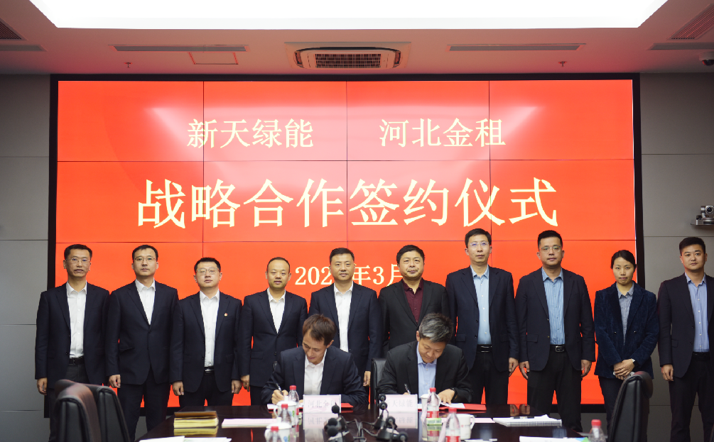 日前,河北省金融租賃有限公司(以下簡稱“河北金租”)與新天綠色能源股份有限公司(以下簡稱“新天綠能”)簽署戰(zhàn)略合作協(xié)議,并就深化合作展開深入交流。河北金租黨委書記、董事長徐敏俊,新天綠能黨委書記、總裁梅春曉及雙方相關(guān)業(yè)務(wù)負責人出席簽約儀式。