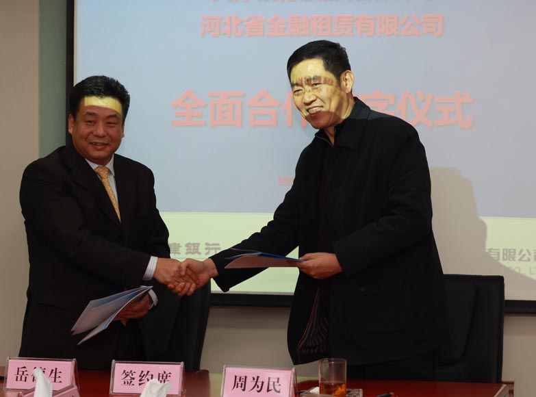 2011年11月15日,公司與天津銀行在河北省石家莊市河北建投大廈舉行了全面合作簽約儀式,周為民總裁與天津銀行副行長岳德生代表雙方簽署了《全面合作協(xié)議書》,天津銀行為公司先期提供同業(yè)授信額度4億元,定向用于開展協(xié)議約定項(xiàng)下業(yè)務(wù)。