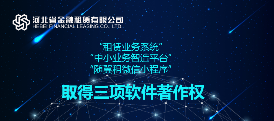 近日,由河北省金融租賃有限公司(以下簡稱“河北金租”)研發(fā)的“中小業(yè)務智造平臺”、“租賃業(yè)務系統(tǒng)”、“隨冀租微信小程序”三件軟件成果正式通過國家版權局審核,獲得計算機軟件著作權,此舉進一步完善了河北金租知識產(chǎn)權保護體系,也標志著公司科技創(chuàng)新工作邁上新臺階。